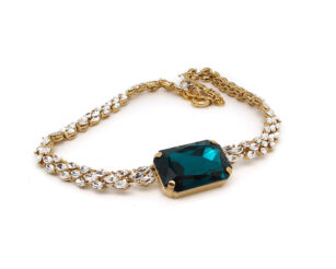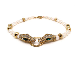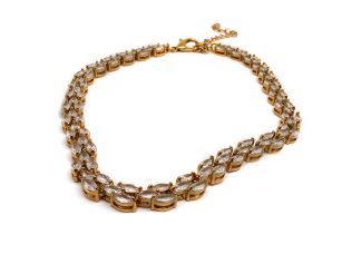 השרשרת עשויה פליז בציפוי זהב ומשובצת באבני סברובסקי
