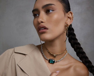 השרשרת עשויה פליז בציפוי כסף ומשובצת בזירקונים