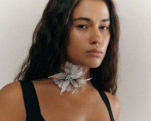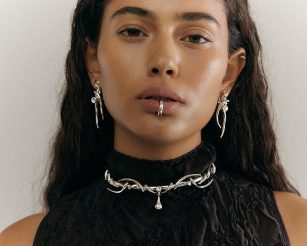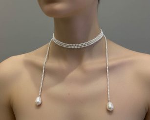 השרשרת עשויה פליז בציפוי כסף משוחר ומשובצת באבני סברובסקי