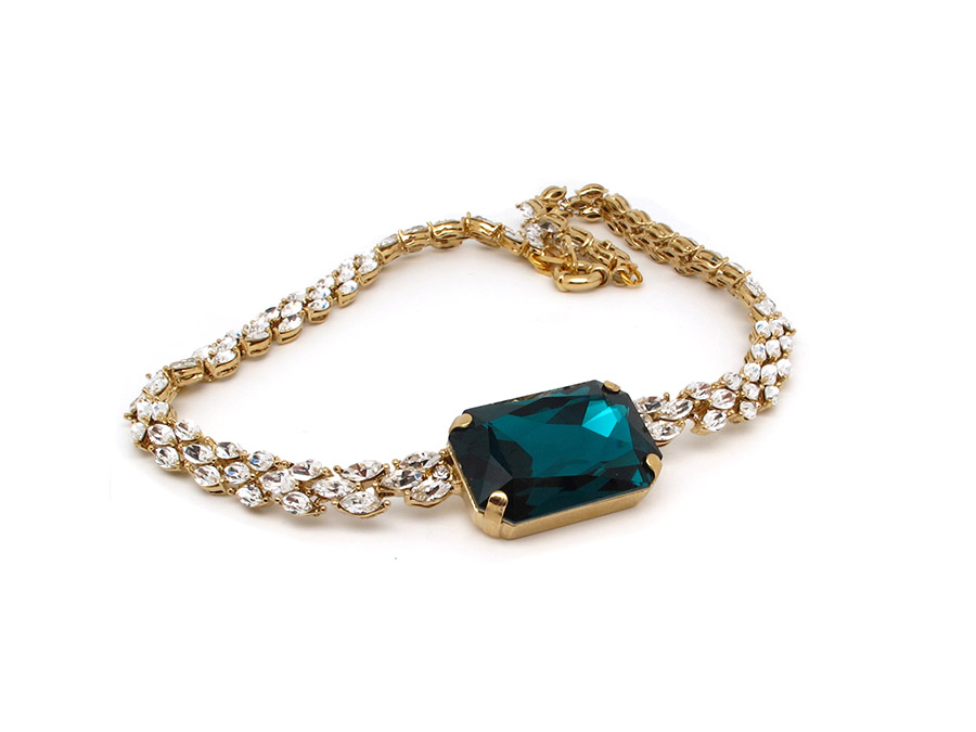השרשרת עשויה פליז בציפוי זהב ומשובצת באבני סברובסקי