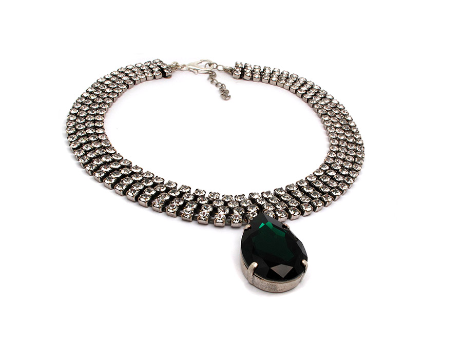 השרשרת עשויה פליז בציפוי כסף משוחר ומשובצת באבני סברובסקי
