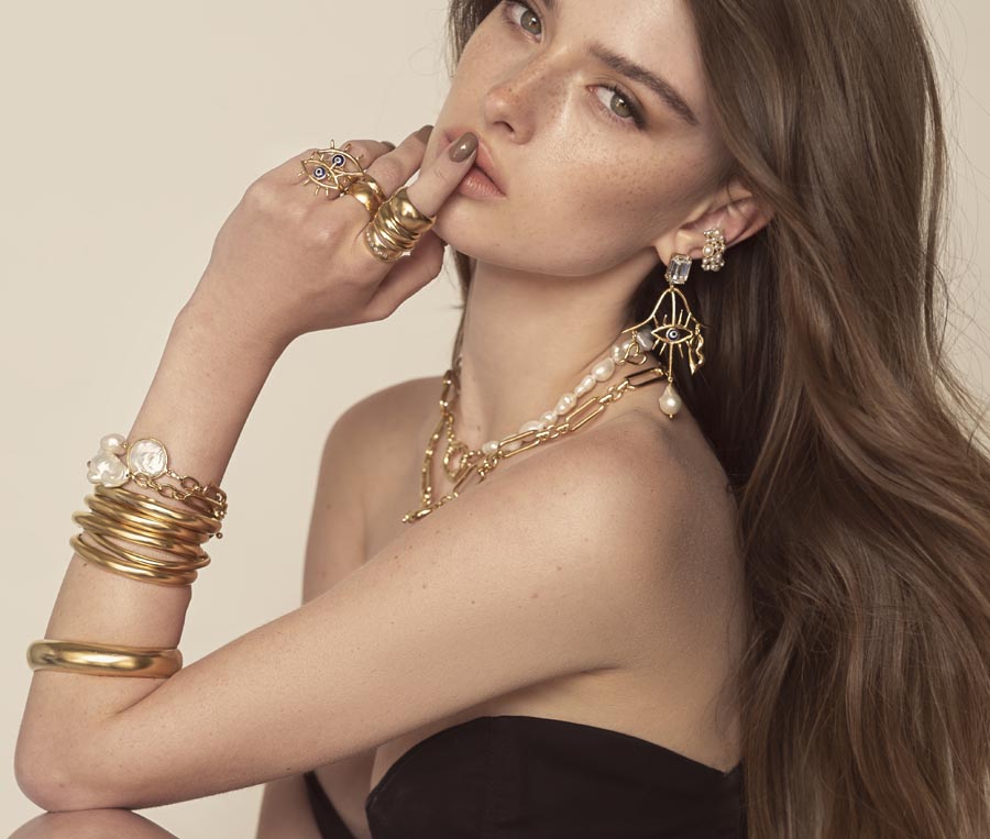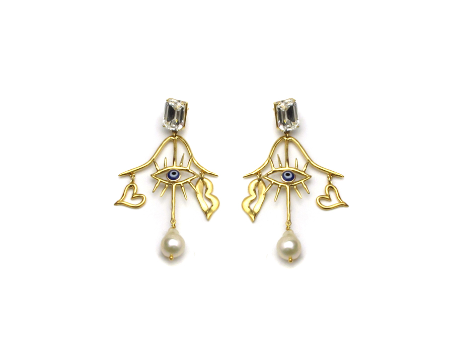 24 קראט מצופה זהב\כסף פליז מצופה, ללא ניקל משובץ אבני סברובסקי ופנינים