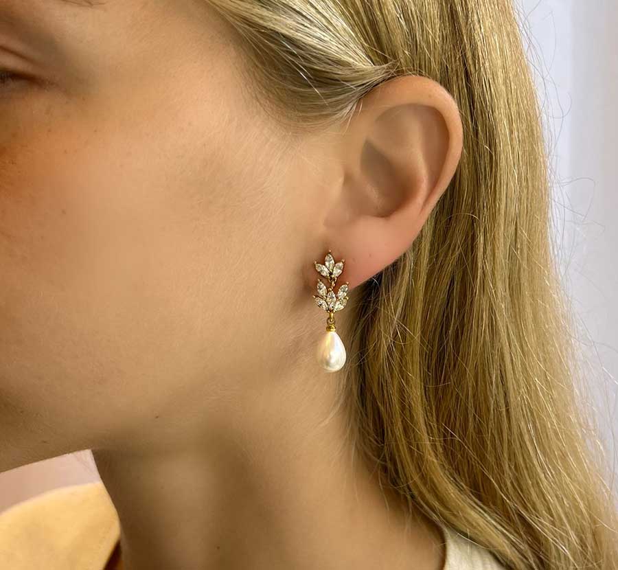מצופה זהב\כסף 24 קראט פליז מצופה, ללא ניקל משובץ אבני סברובסקי ופנינים